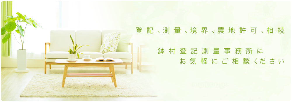 鉢村登記測量事務所は栃木県さくら市で測量/土地建物登記/境界確認/相続/農地転用許可/開発許可/公有地払下げ/会社設立/各種許認可申請等を行う土地家屋調査士・行政書士事務所です。
